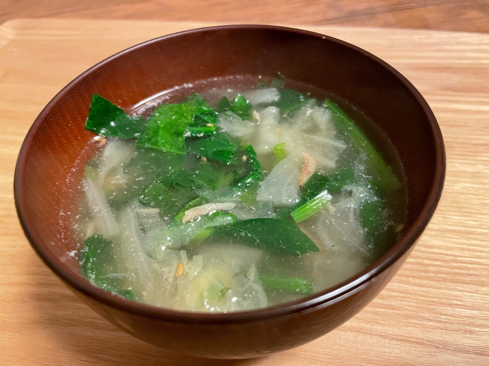 桜島大根とほうれん草の吸い物 スープ 汁物 レシピ かごっまおごじょのうんまかレシピ